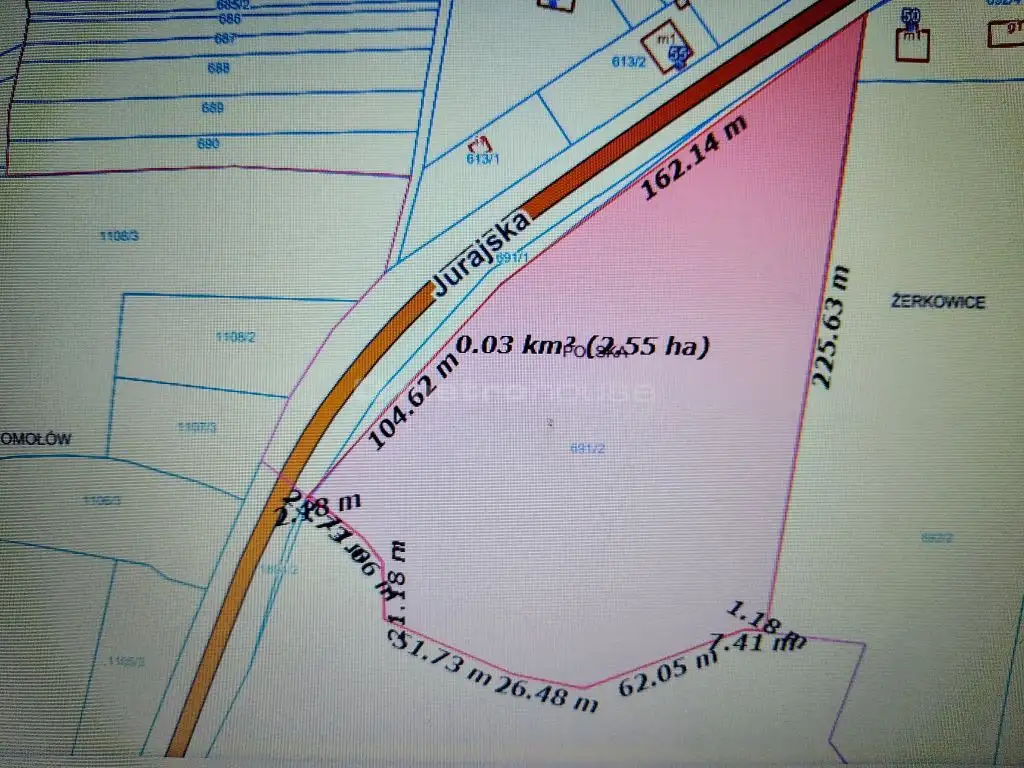 Park Krajobrazowy Jury Krakowsko-Częstochowskiej, przepięknie położona działka na szlaku Orlich Gniazd w Żerkowicach, zielonej dzielnicy Zawiercia o powierzchni 2,57 ha.