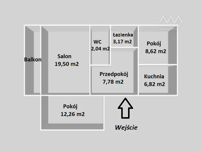 Na mieszkanie o powierzchni 60,2 m² składa się: