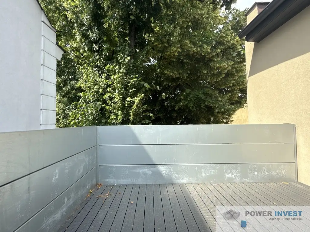 Taras 2. piętro – słoneczny, otwarty, sąsiadujący z wysokim drzewem – natura w środku miasta, intymny.