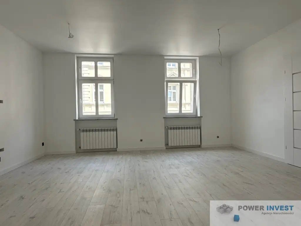 Okna PCV, dzielone – duże, jasne, z widokiem na sąsiadujące kamienice