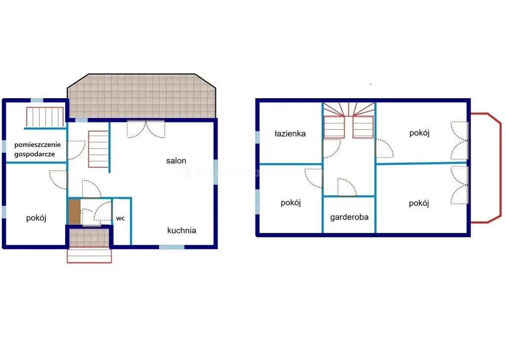 Na piętrze 3 sypialnie, garderoba i łazienka.