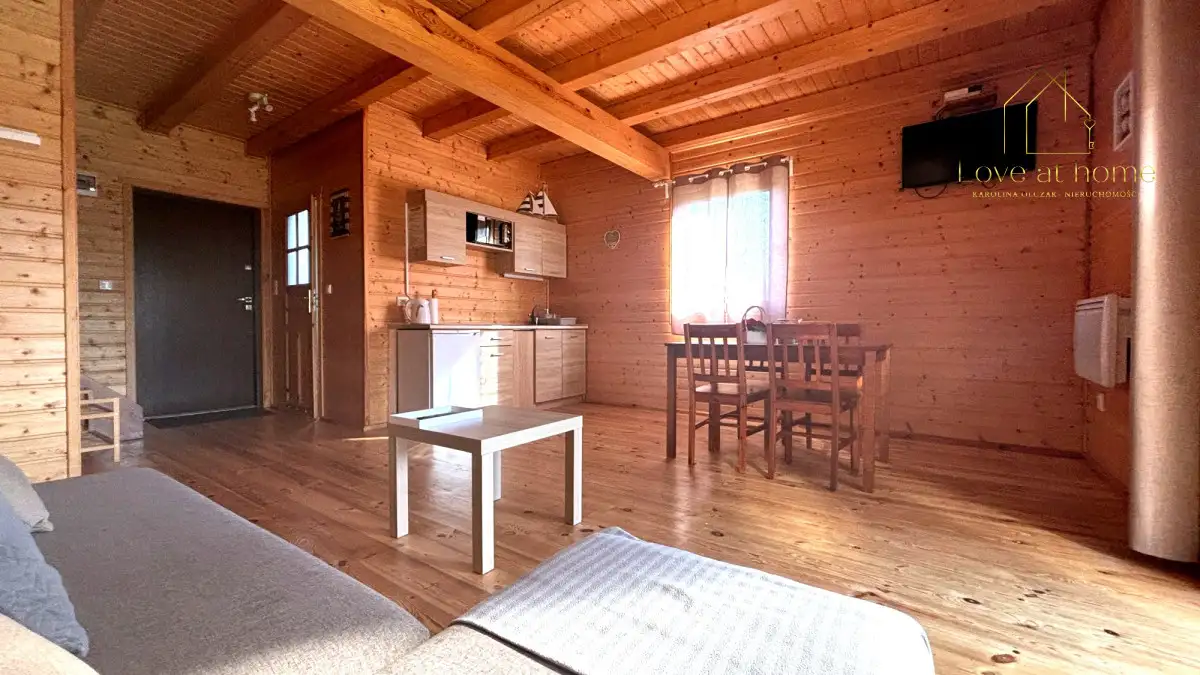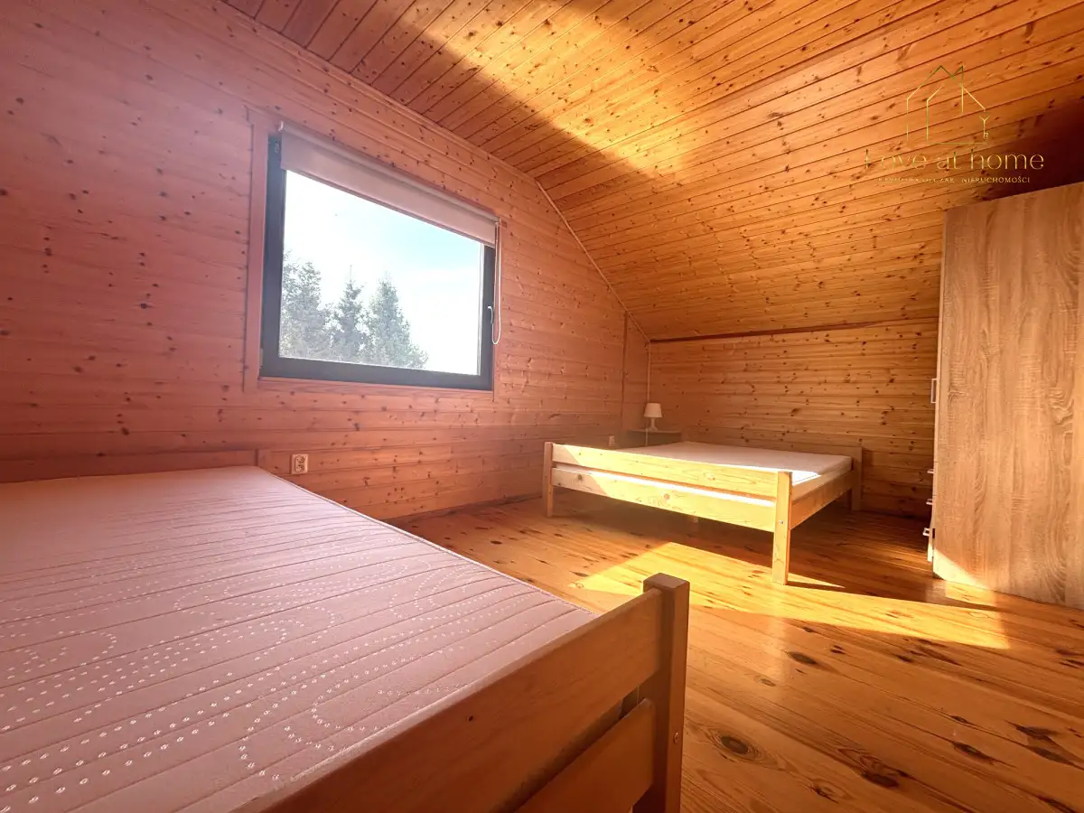 • Budynek o konstrukcji drewnianej, ocieplony, posadowiony na fundamencie żelbetowym, wykonany ze starannością i dbałością o parametry termoizolacyjne.