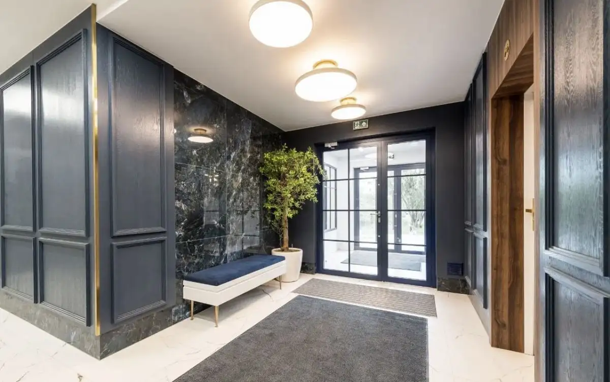 Mieszkanie znajduje się na czwartym piętrze pięciokondygnacyjnego budynku wyposażonego w dwie cichobieżne windy, który został oddany do użytku w 2023 roku przez dewelopera Hanza w inwestycji Blue by Hanzą. Motywem przewodnim inwestycji jest błękit, od którego zaczerpnęła ona swoją nazwę.