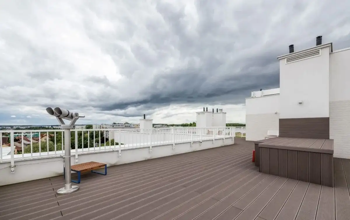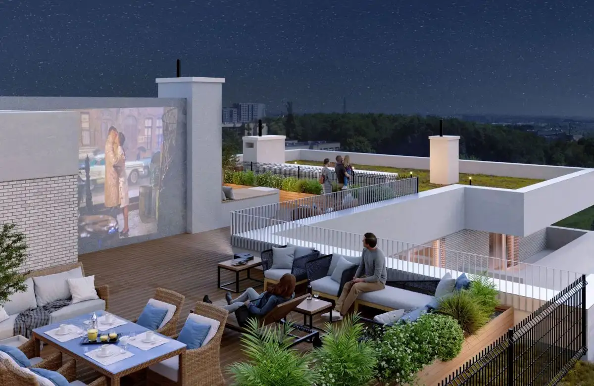 Na dachu budynku powstał taras wypoczynkowy, z którego rozpościera się piękny widok m. in. na Zatokę Gdańską oraz Trójmiejski Park Krajobrazowy. Dostęp posiadają wszyscy mieszkańcy - to ponad 90 m kw. powierzchni na spotkania z rodziną i przyjaciółmi, organizację kina letniego czy zdalną pracę na powietrzu. Na parterze budynku, zaś powstało pomieszczenie na wózki i rowery.
