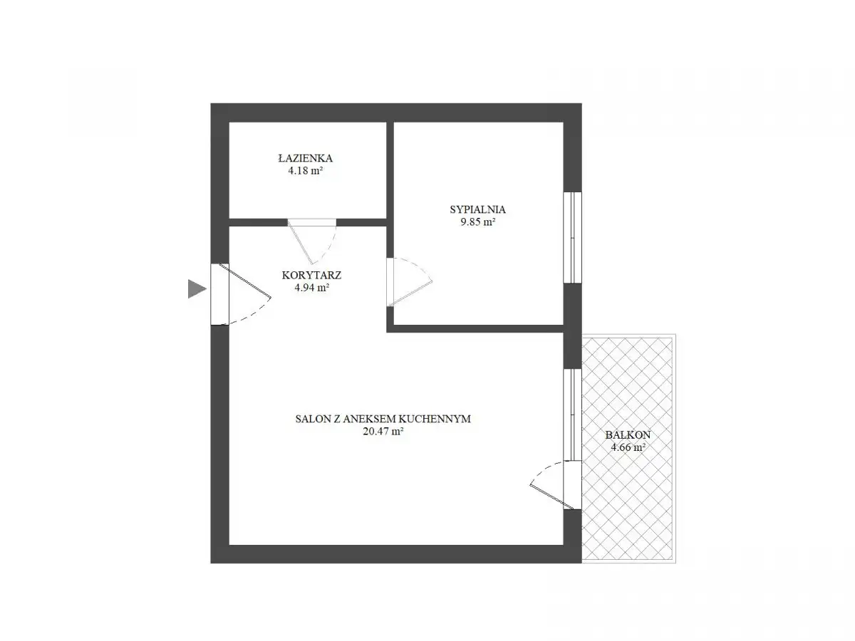 ♦ przestronny i jasny pokój dzienny (20,47 m2) wraz z aneksem kuchennym oraz wyjściem na słoneczny balkon (4,66 m2),