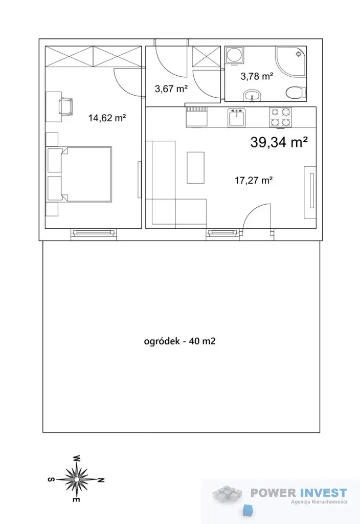 Mieszkanie znajduje się na parterze. Lokal ma powierzchnię 39,02 m² powierzchni użytkowej i składa się z: