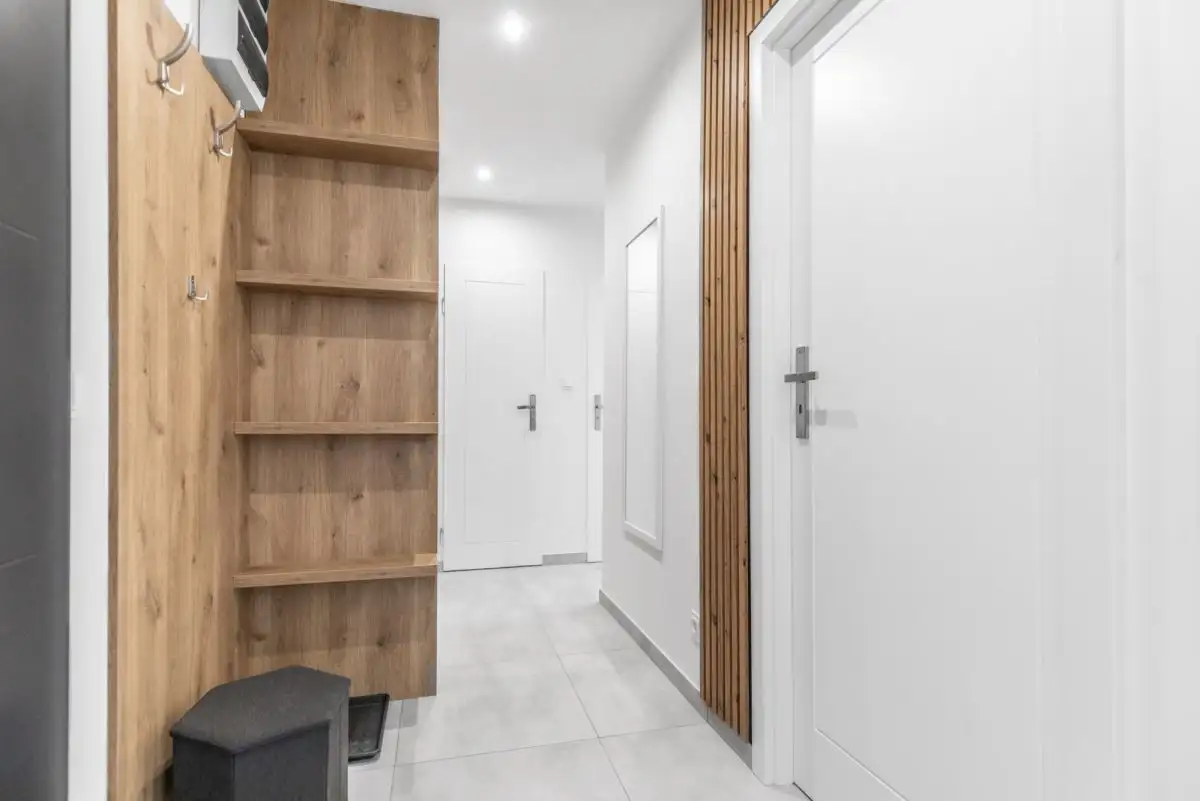 - Podłogi: panele, płytki