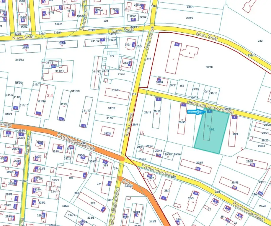 nieruchomości dojeżdża się drogą o nawierzchni asfaltowej stanowiącą ul. Hieronima Derdowskiego.