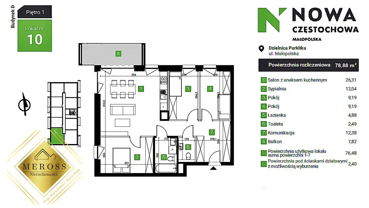 Biuro MEROSS Nieruchomości przedstawia do sprzedaży mieszkanie z najnowszej inwestycji Nowa Małopolska, zlokalizowanej w dzielnicy Parkitka w Częstochowie. Lokal mieszkalny...