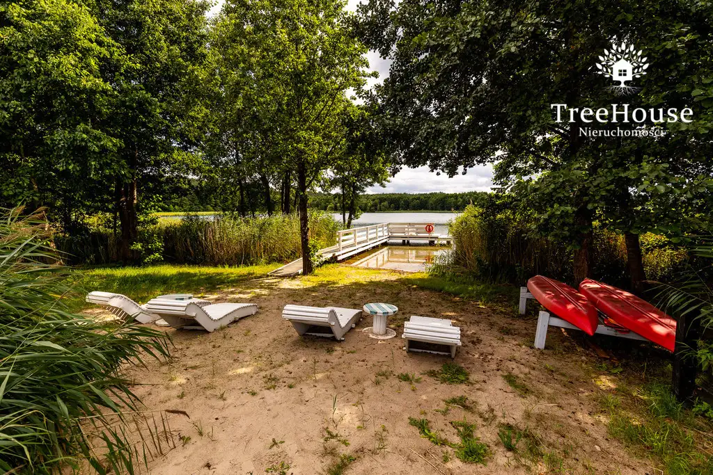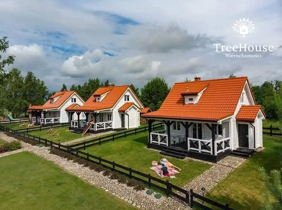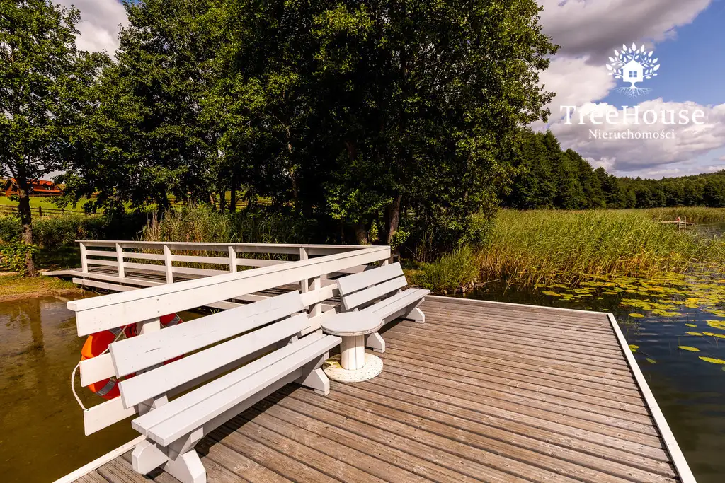 Oferujemy Państwu na sprzedaż dochodowy, całoroczny obiekt turystyczny nad jeziorem składający się z trzech komfortowych, gustownie urządzonych domów z bala wraz z całą infrastrukturą, do której należy wiata biesiadna, trzy wiatki na drewno, plac zabaw, sauna, trzy pomieszczenia gospodarcze, parking na 5 samochodów osobowych i chodniki wyłożone naturalnym kamieniem. Cały teren jest ogrodzony, oświetlony i monitorowany. Niezaprzeczalnym atutem inwestycji jest prywatna linia brzegowa przynależna do ośrodka wraz z prywatną plażą, pomostem i wysepką.