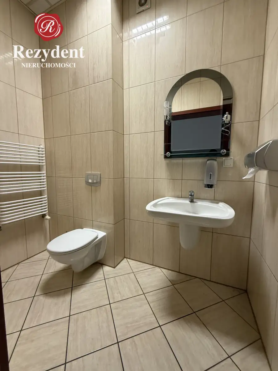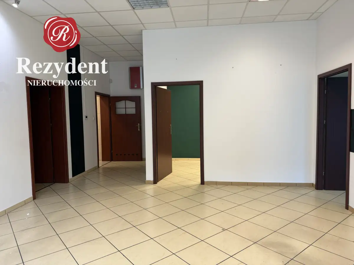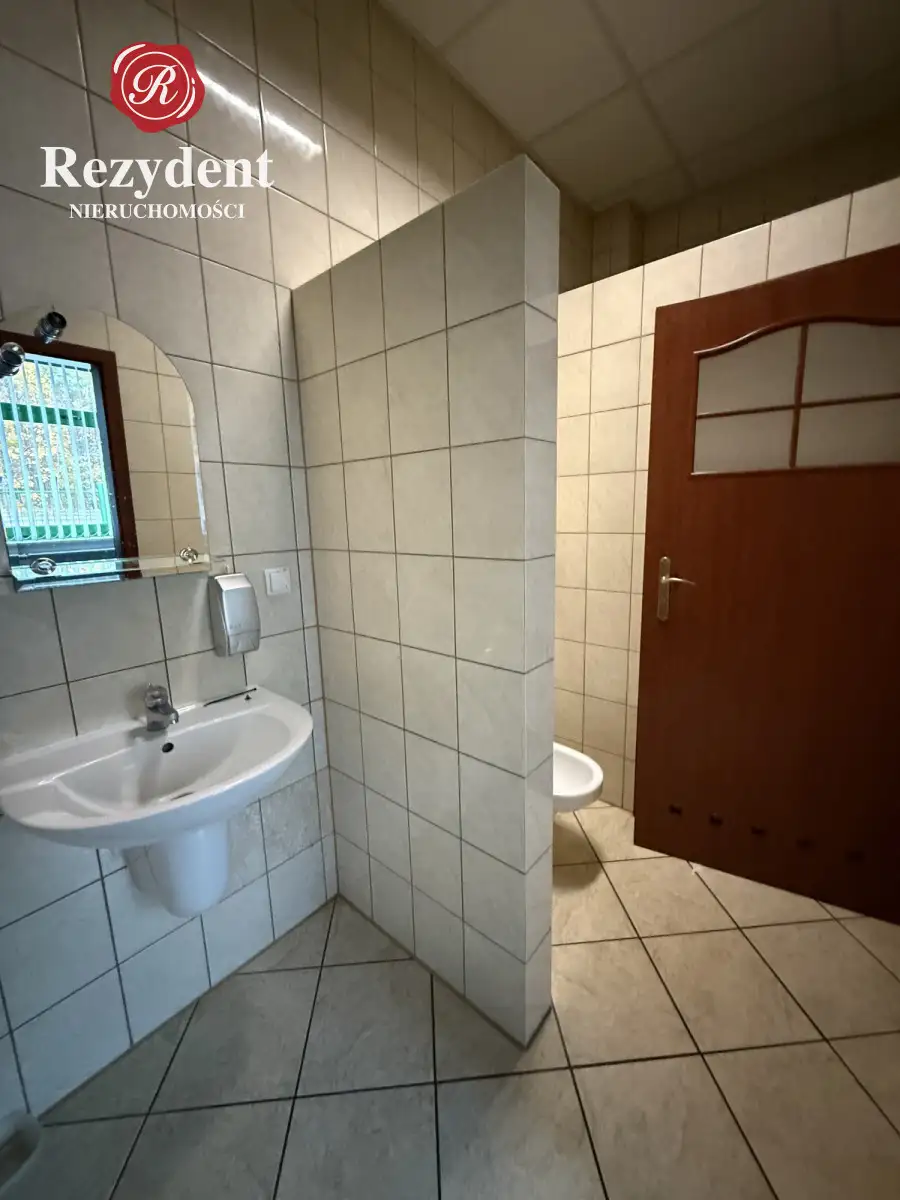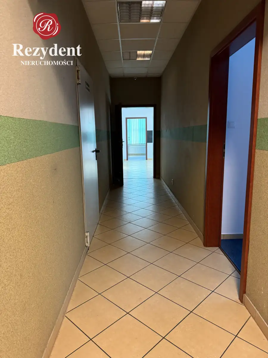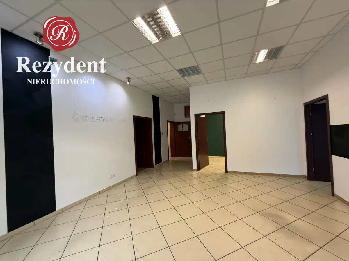 W przedmiotowym lokalu zlokalizowano duże otwarte pomieszczenie przy wejściu -32m² dwa sąsiadujące ze sobą pomieszczenia z doprowadzoną wodą i kanalizacją 15,5m² i 17m²,, osobny gabinet 20m², a także łazienkę z toaletą i prysznicem -3,5m², kuchnię/zaplecze socjalne niecałe 6m². Do tego komunikacja - 11m².