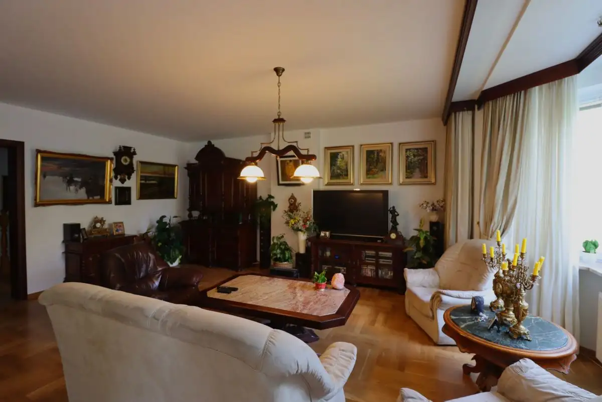 Na sprzedaż zjawiskowy dom, położony na Warszawskim Ursynowie. Wybudowany w 1999 r. w bardzo wysokim standardzie, wykończony z dbałością o każdy szczegół. Nieruchomość usytuowana w pięknym rejonie, na zamkniętym, strzeżonym osiedlu. W okolicy; liczne sklepy, kawiarnie, restauracje.