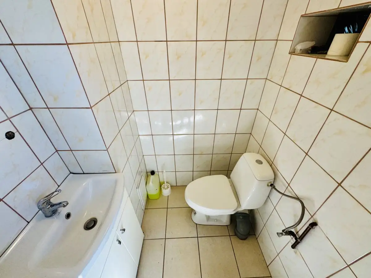 Na działce znajduje się solidnie zbudowany, całoroczny domek o łącznej powierzchni użytkowej ok. 50 m² (parter 25 m² + poddasze 25 m²). Parter składa się z salonu z aneksem kuchennym (17 m²), toalety oraz dwóch praktycznych pomieszczeń gospodarczych. Na w pełni użytkowe poddasze prowadzą składane schody. Dodatkowo do dyspozycji jest zadaszony taras (9 m²), idealny na letnie wieczory. Ogród jest w pełni zagospodarowany - znajdziemy tu liczne krzewy ozdobne, drzewa owocowe oraz zadbany trawnik.