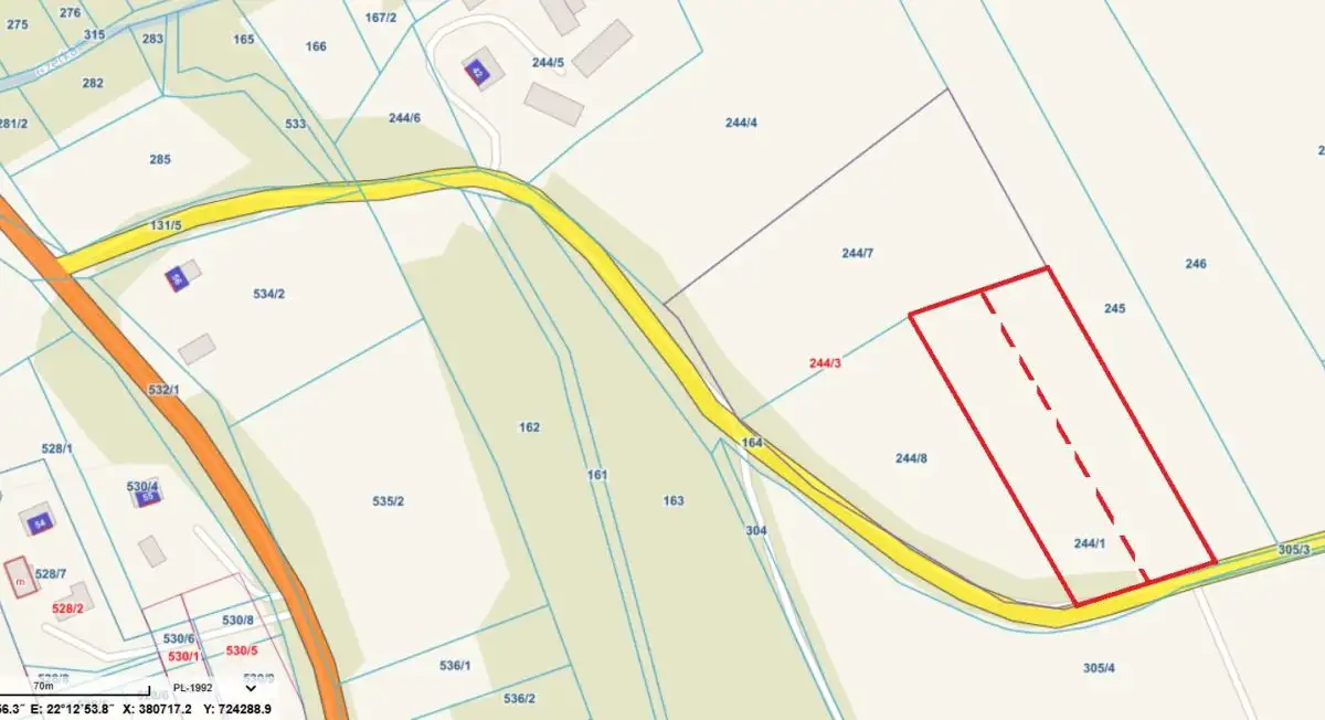 Malowniczo położona działka rolna nr 3/8 (połówka) o pow. 1745m2 w miejscowości Wojciechów Kolonia Pierwsza. Pierwsza linia zabudowy przy szosie...
