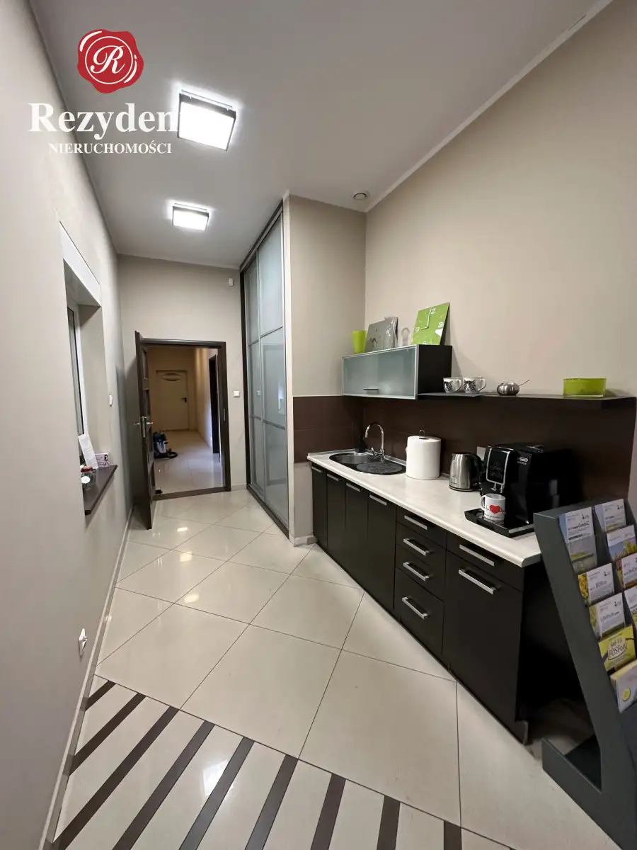 2. Części biurowej z dużym pomieszczeniem sprzedaży (otwarty hall z miejscami na kilka stanowisk do kontaktu z klientami-54m2, osobne biuro idealne dla osoby zarządzającej firmą - ponad 25m², osobna toaleta 3,25m2, aneks kuchenny w ciągu komunikacyjnym ponad 8m2.