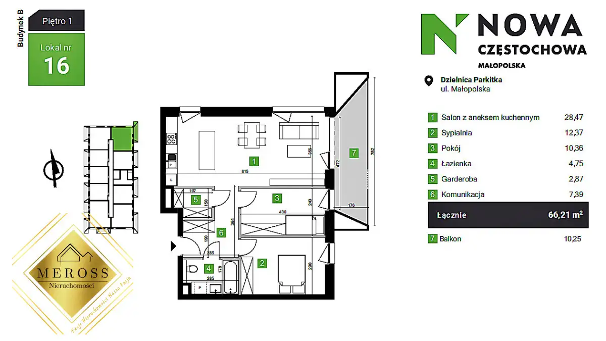 MEROSS Nieruchomości & ParkLand Inwestycjeprzedstawia do sprzedaży mieszkaniezlokalizowane w dzielnicy Parkitka w Częstochowiena osiedlu Park MałopolskaMieszkanie może być wyposażonew Inteligentny...