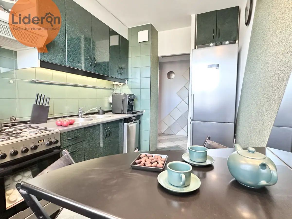 W kuchni (ok. 7,5 m²) są meble w zabudowie, płyta gazowa, piekarnik, lodówka, okap i zlew. Mieści się też stół, można więc wygodnie zjeść posiłki.