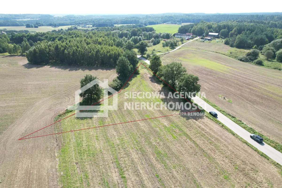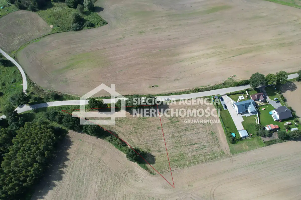 Nieruchomość w kształcie zbliżonym do trójkąta, od strony drogi lekko pochylona w dalszej części płaska, położona przy drodze gminnej wyłożonej trelinką.