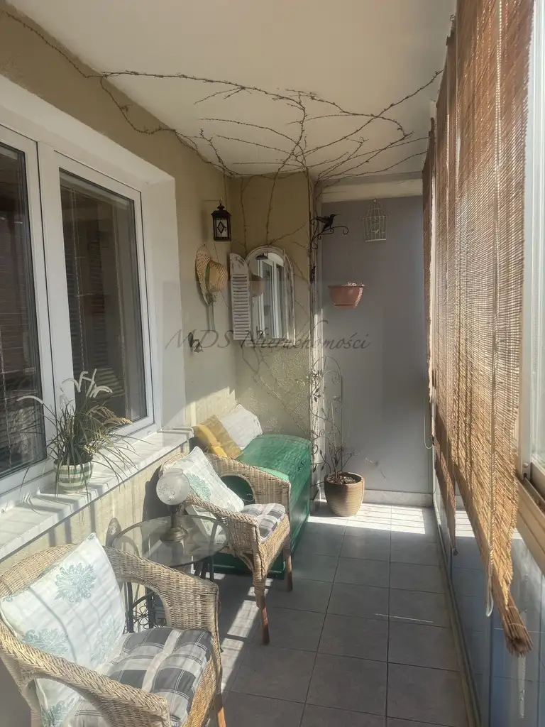 Loggia zabudowana szybami zapewnia słoneczne miejsce do odpoczynku,