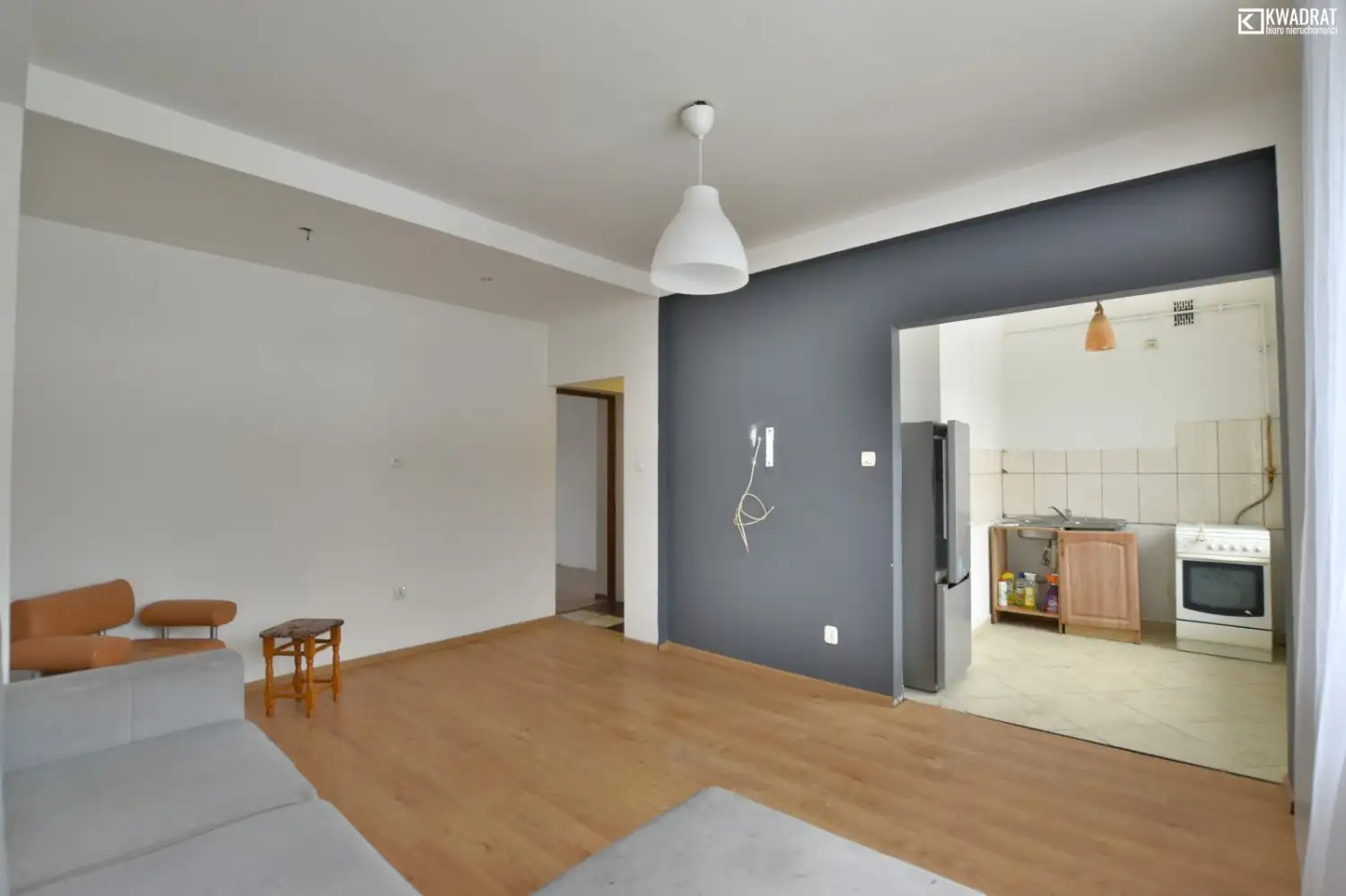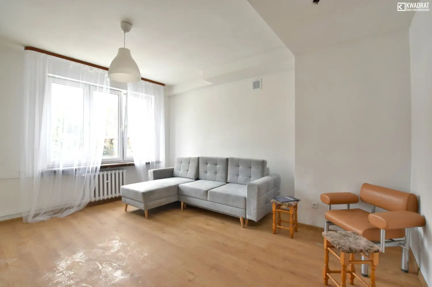 Standard wykończenia: mieszkanie wymagające odświeżenia/remontu, podłogi wykonane są z paneli (pokoje) i z terakoty (w przedpokoju, kuchni, łazience), okna plastikowe. Instalacja elektryczna częściowo wymieniona.
