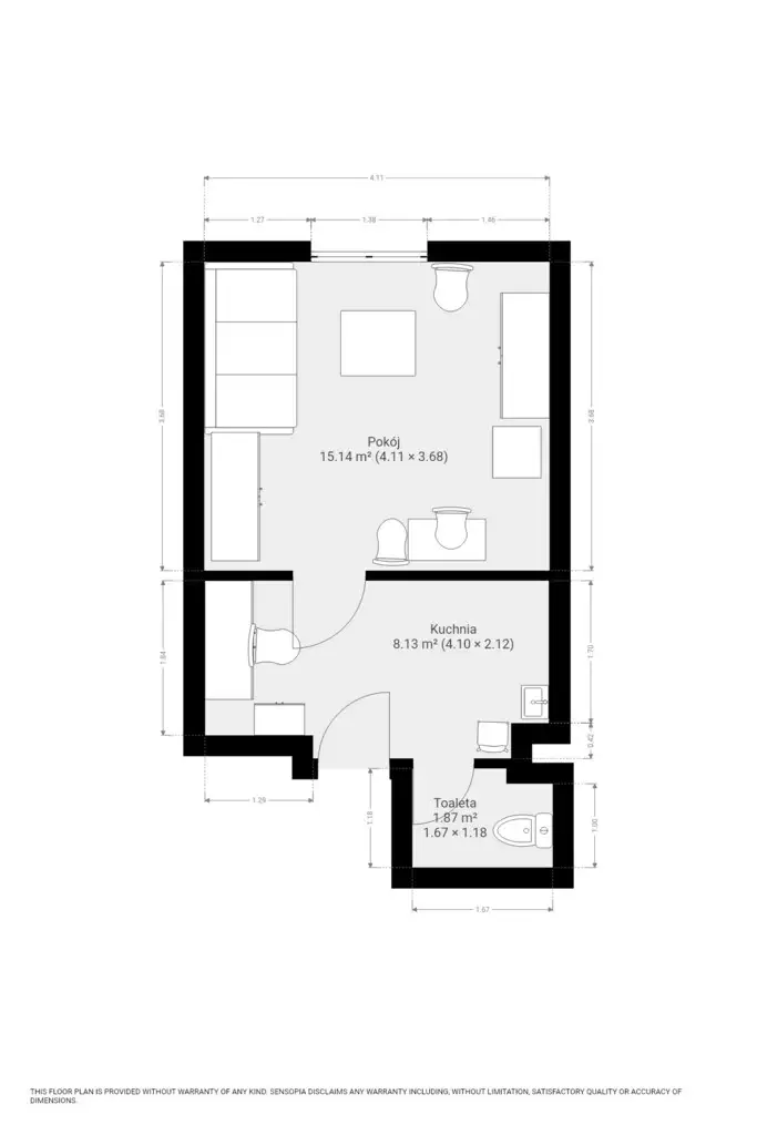 Pomieszczenia wymagają remontu, ale dają wiele możliwości – mogą pełnić funkcję oddzielnej kawalerki (np. pod wynajem), a po wydzieleniu nawet zostać sprzedane jako osobna nieruchomość.