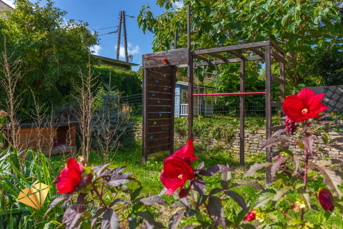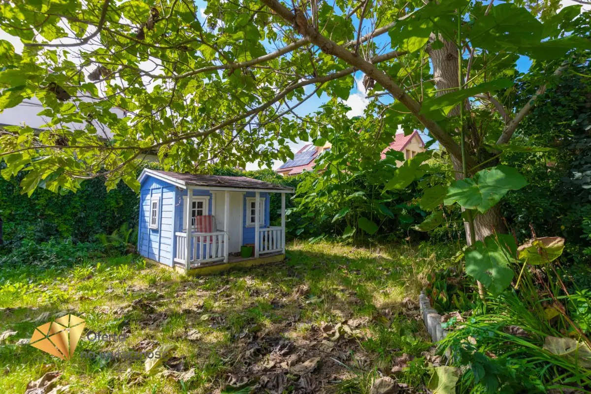 • Ogród: bogato obsadzony, pełen drzew i różnorodnej roślinności