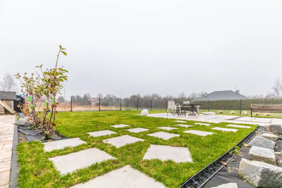 ​Teren ogrodzony nieruchomości jest ogrodzony, podjazd i opaska zostały wykonane z kostki. Taras 25m².