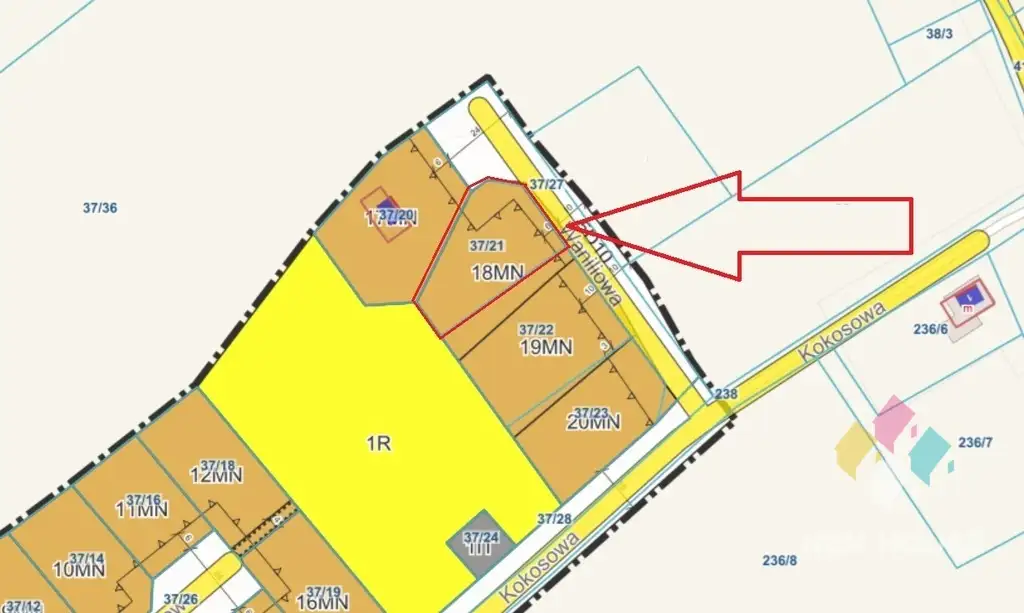 Teren objęty miejscowym planem zagospodarowania przestrzennego z przeznaczeniem pod zabudowę jednorodzinną- oznaczony symbolem 18 MN.