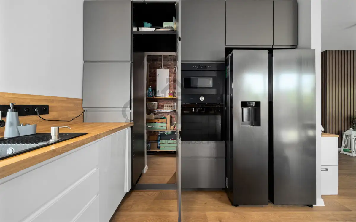 - salonu z aneksem kuchennym i spiżarnią