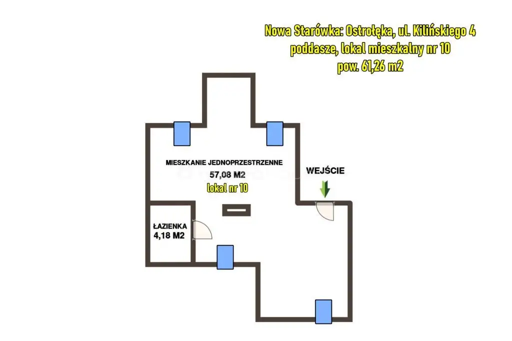 Mieszkanie jednoprzestrzenne: 61,26 m²