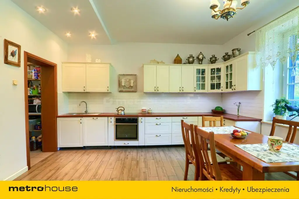 W budynku głównym, na parterze, znajduje się przestronny pokój dzienny z wyjściem do oranżerii, oddzielna kuchnia ze spiżarnią, łazienka, kotłownia oraz schody prowadzące na poddasze.