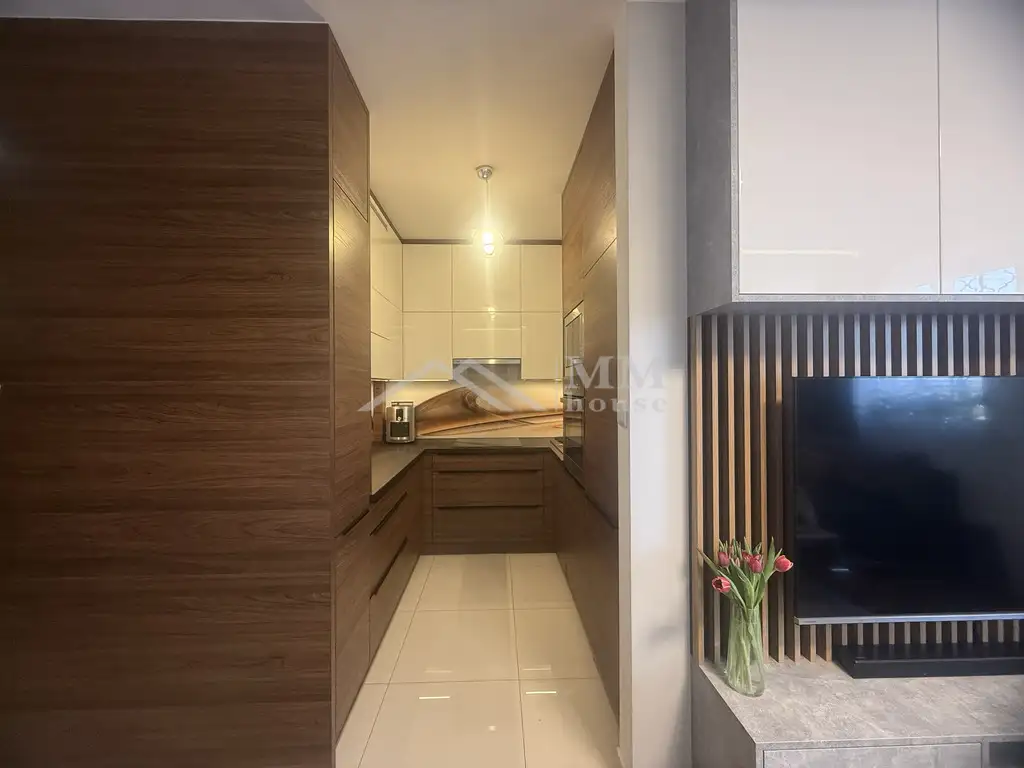 ✔ Otwarta kuchnia – elegancka zabudowa meblowa i wysokiej klasy sprzęty AGD (lodówka Electrolux, piekarnik Beko, płyta indukcyjna Amica, kuchenka mikrofalowa Samsung, zmywarka Beko, okap Beko, zlew i bateria marki Franke).