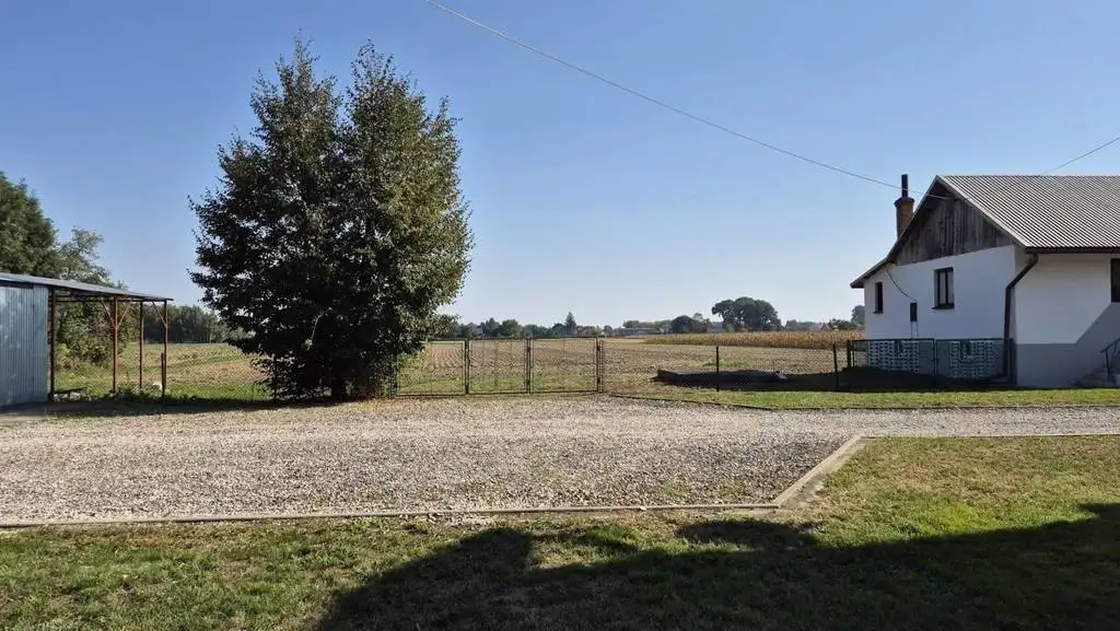 Działka ma powierzchnię około 30 arów. Podjazdy pod budynki gospodarcze utwardzone, pokryte ozdobnym białym kamieniem. Powierzchnia ogrodzona siatką wraz z trzema bramami wjazdowymi. Posesja położona jest w bardzo spokojnej i atrakcyjnej okolicy nad rzeką Wisłoką. Dostęp komunikacyjny bardzo dobry (asfaltowa droga usytuowana na koronie wału od strony północno- zachodniej oraz droga polna od strony południowo-wschodniej). Dojazd do centrum Gawłuszowic trwa kilka minut, do centrum Połańca około 10min, do centrum Mielca około 20min.