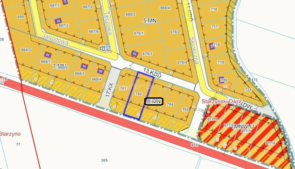 Teren objęty jest Miejscowym Planem Zagospodarowania Terenu o symbolu 8-MN - tereny zabudowy mieszkaniowej jednorodzinnej.
