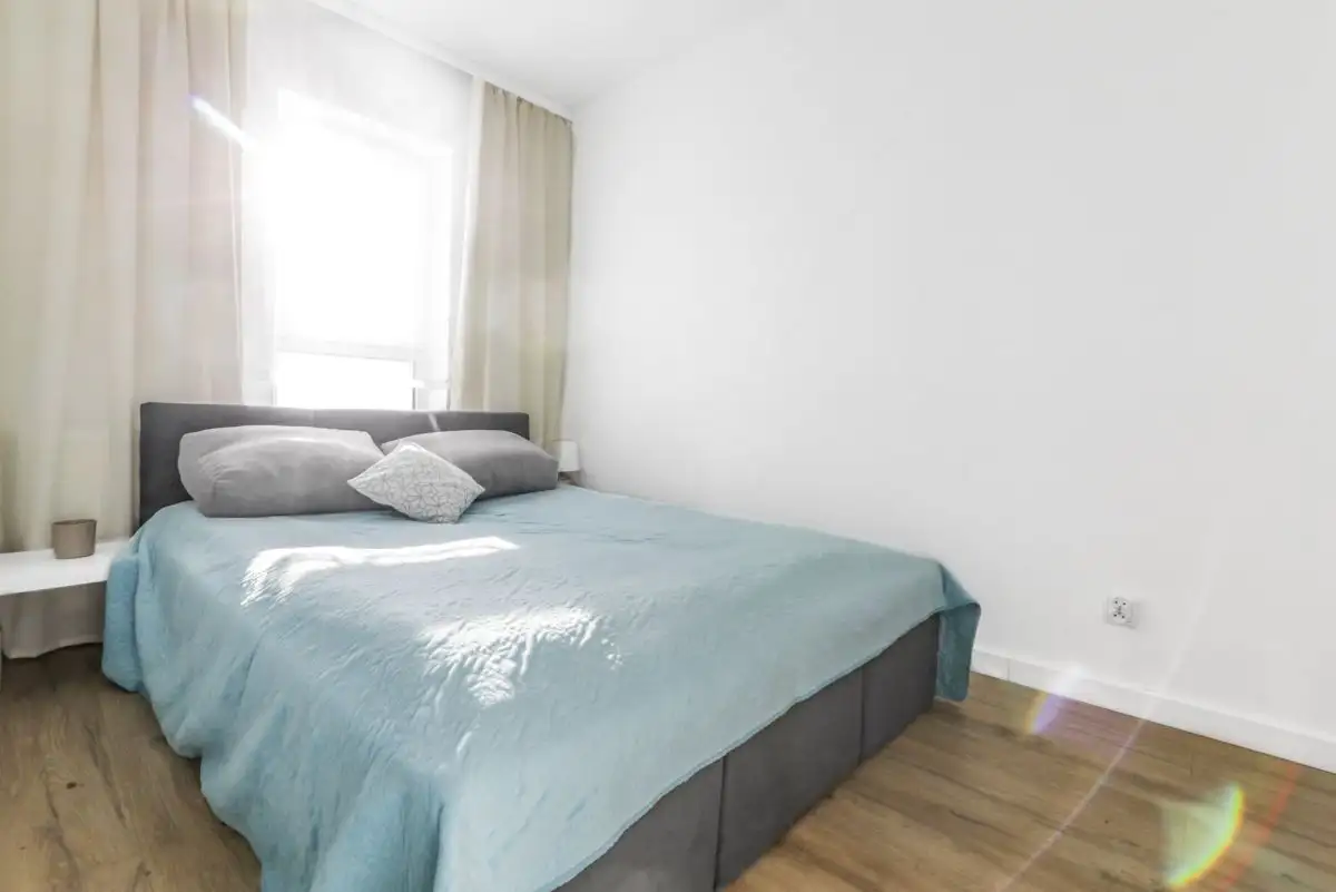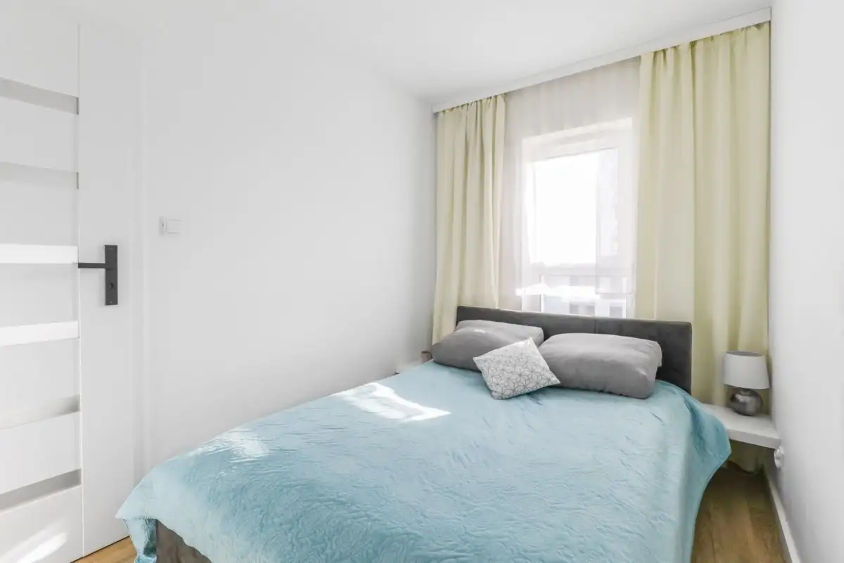 - Sypialnia z podwójnym łóżkiem oraz szafą, wystawa południowa.