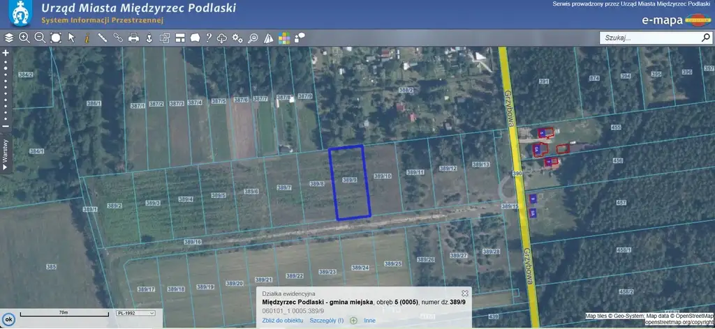 położonych w obrębie 5 m. Międzyrzeca Podlaskiego przy ul. Grzybowej, będących własnością Gminy Miejskiej Międzyrzec Podlaski, dla których Sąd Rejonowy w Radzyniu Podlaskim prowadzi księgę wieczystą KW LU1R/00041094/0. Zgodnie z obowiązującym miejscowym planem zagospodarowania przestrzennego terenu przy ulicy Grzybowej w Międzyrzecu Podlaskim nieruchomości leżą na terenie wyznaczonym pod zabudowę mieszkaniową jednorodzinną o wysokości maksymalnej budynków - 12 m do najwyższego elementu konstrukcji (symbol planu 1 MN). Uzbrojenie techniczne terenu – energia elektryczna (w drodze), kanalizacja sanitarna i wodociąg (wyprowadzone przyłącza do działek).