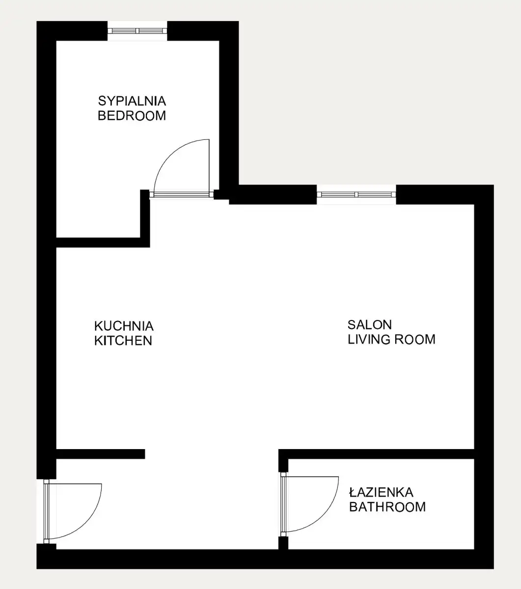 Pokoje: Sypialnia, Salon, Aneks kuchenny, Łazienka