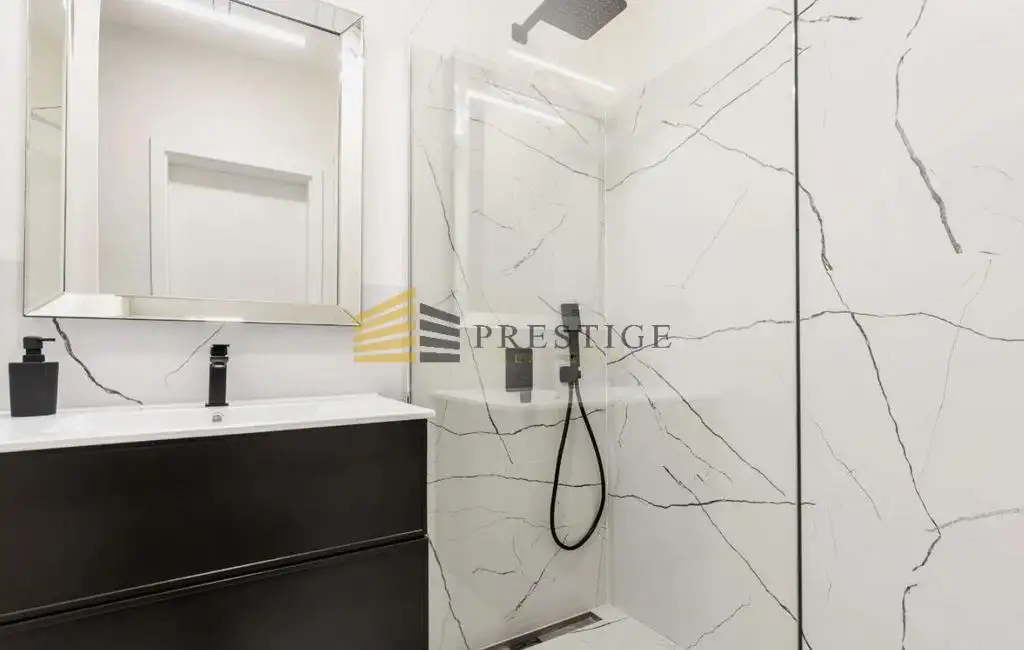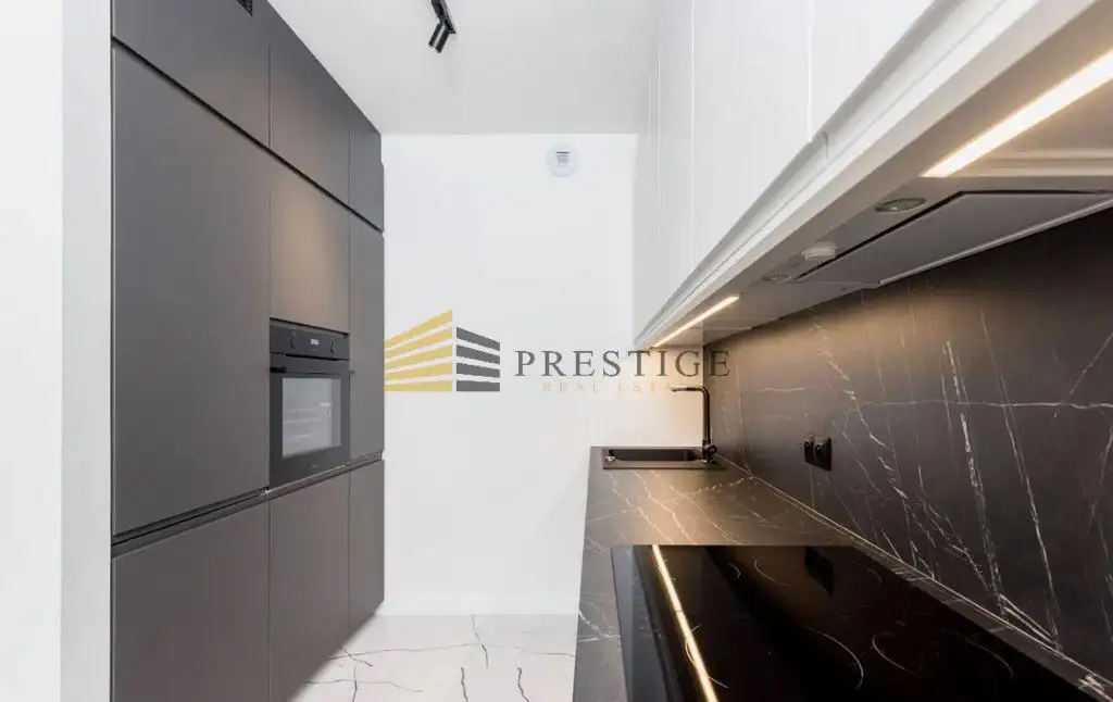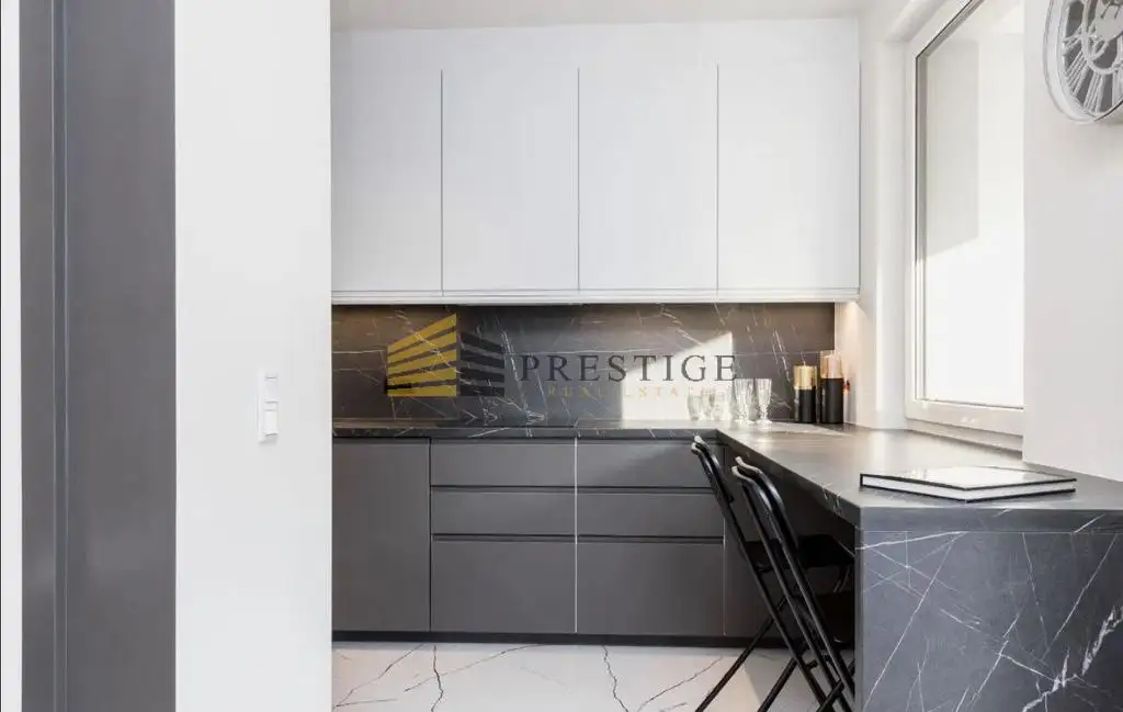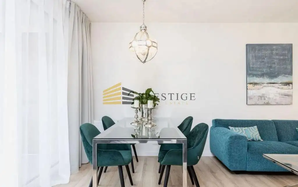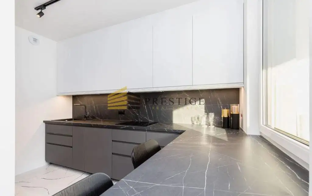 Eleganckie wnętrza urządzone w stylu New Classic. Mieszkanie jest w pełni wyposażone w najwyższej klasy sprzęty AGD, w tym pralkę, zmywarkę, lodówkę, piekarnik, płytę indukcyjną i okap. Designerskie meble oraz ciepłe oświetlenie tworzą przytulną atmosferę.
