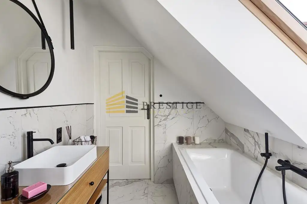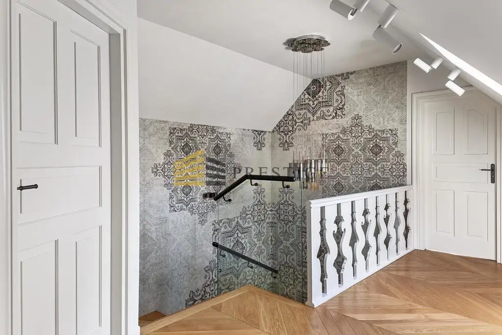 High standard. The detailed equipment is shown in the drawings of the floor plans. The other equipment, not shown in the plans, only illustrates the possibility of interior design and does not constitute an offer within the meaning of the law. Wooden window and door frames (reconstruction of the monument). Wooden floors, solid oak boards (monument of the herringbone palace). House in a quiet area, good access to the center, close to school and shopping and service center. The house is located in the protected area of the Capital City Conservator of Monuments "CITY GARDEN SADYBA"