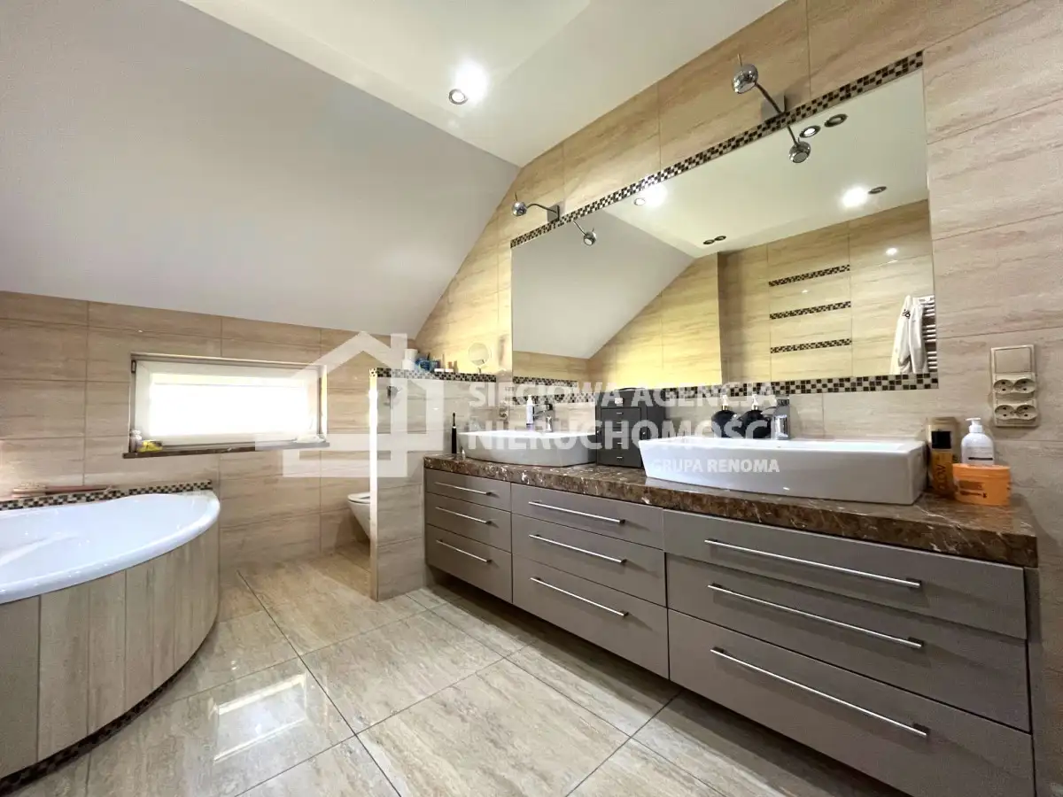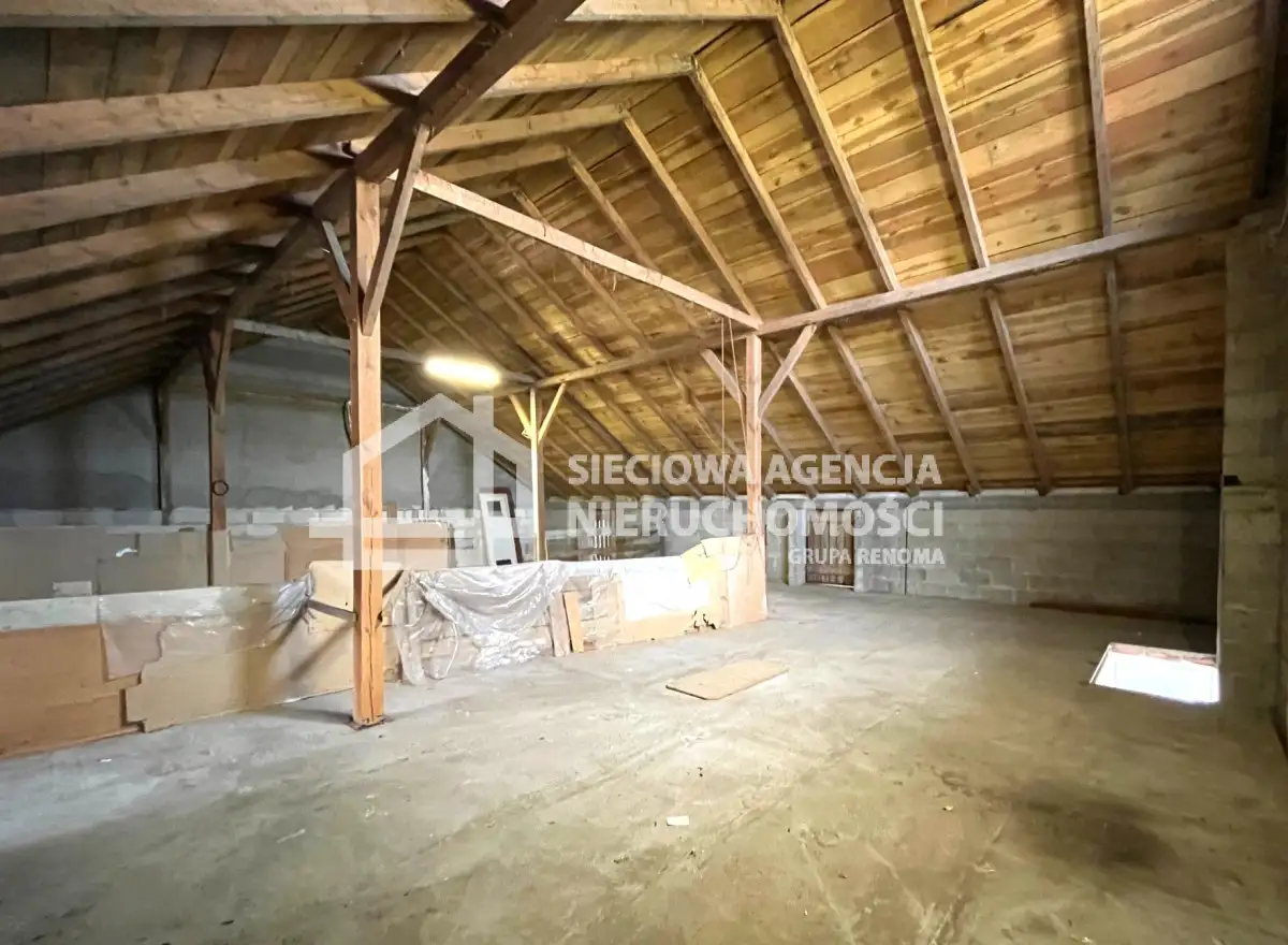 Na piętrze cztery wygodne duże sypialnie, łazienka główna z kabiną prysznicową i na strychu otwarte pomieszczenie.