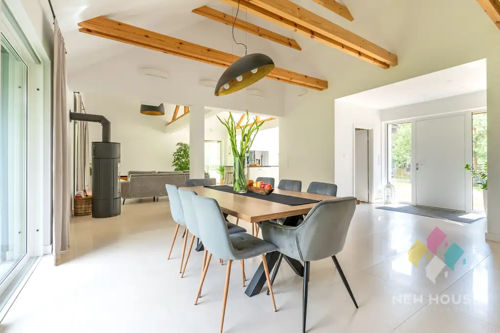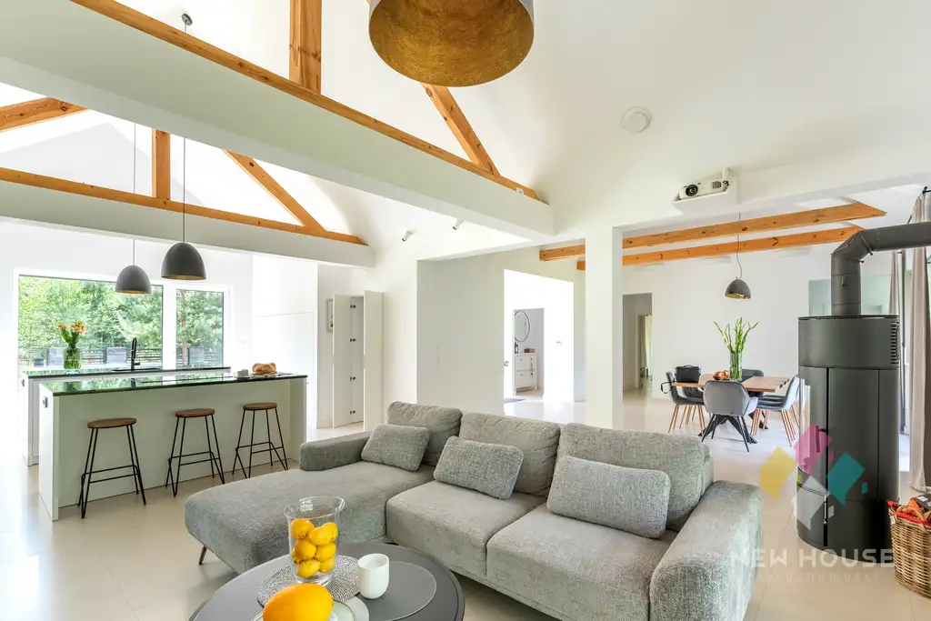 Dom utrzymany w nowoczesnym, minimalistycznym stylu, jest niezwykle przestronny. Dominują jasne kolory, które optycznie powiększają przestrzeń.