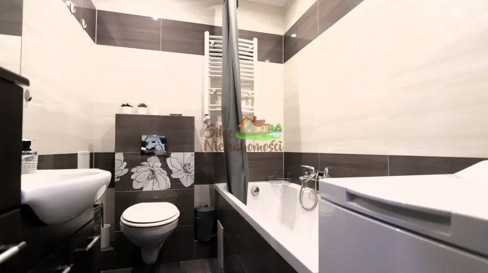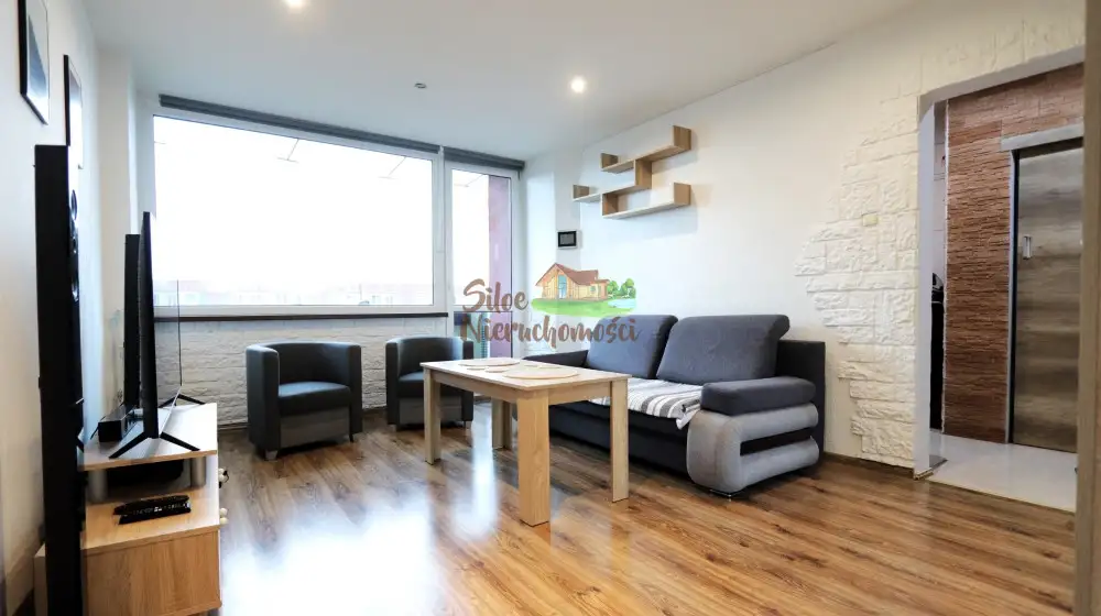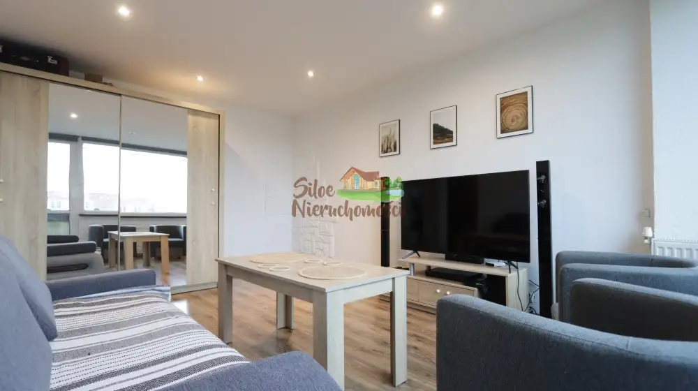 Mieszkanie jest w pełni umeblowane nowoczesnymi, stylowymi meblami i wyposażone w sprzęt AGD - zmywarkę, lodówko-zamrażarkę, płytę indukcyjną, pralkę oraz pochłaniacz. Przestronny salon z częścią wypoczynkową, dużą szafą, komodą zapewnia wygodę i funkcjonalność. Spora, oddzielna kuchnia to praktyczne rozwiązanie, a łazienka jest duża, estetyczna i w pełni wyposażona.