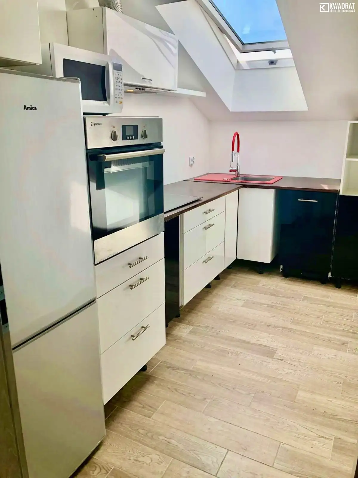 Mieszkanie w pełni wyposażone w sprzęt AGD - lodówka, piekarnik, płyta indukcyjna, pralka, kuchenka mikrofalowa.