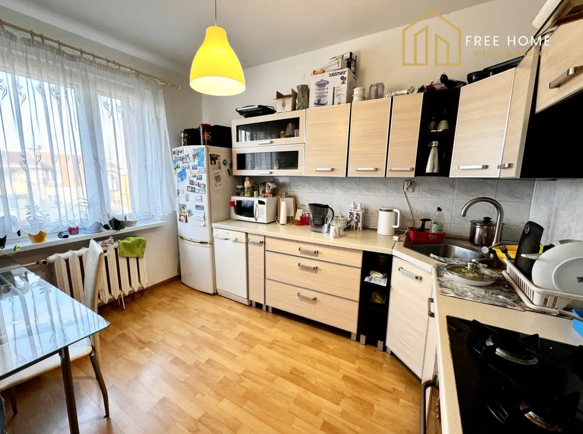 Mieszkanie składa się z jasnego salonu z wyjściem na duży balkon, sypialni, łazienki z WC, która posiada okno, oraz oddzielnej, widnej kuchni. Mieszkanie jest dobrze doświetlone dzięki oknom PCV oraz dogodnej ekspozycji. Instalacja wodno-kanalizacyjna została wymieniona w całym pionie, co oznacza brak konieczności przeprowadzania dodatkowych prac remontowych w tym zakresie. Ogrzewanie miejskie zapewnia komfort, a czynsz wynosi 750 zł. Mieszkanie wymaga jedynie odświeżenia, a sprzedawane jest wraz z wyposażeniem, co pozwala na szybkie wprowadzenie się.