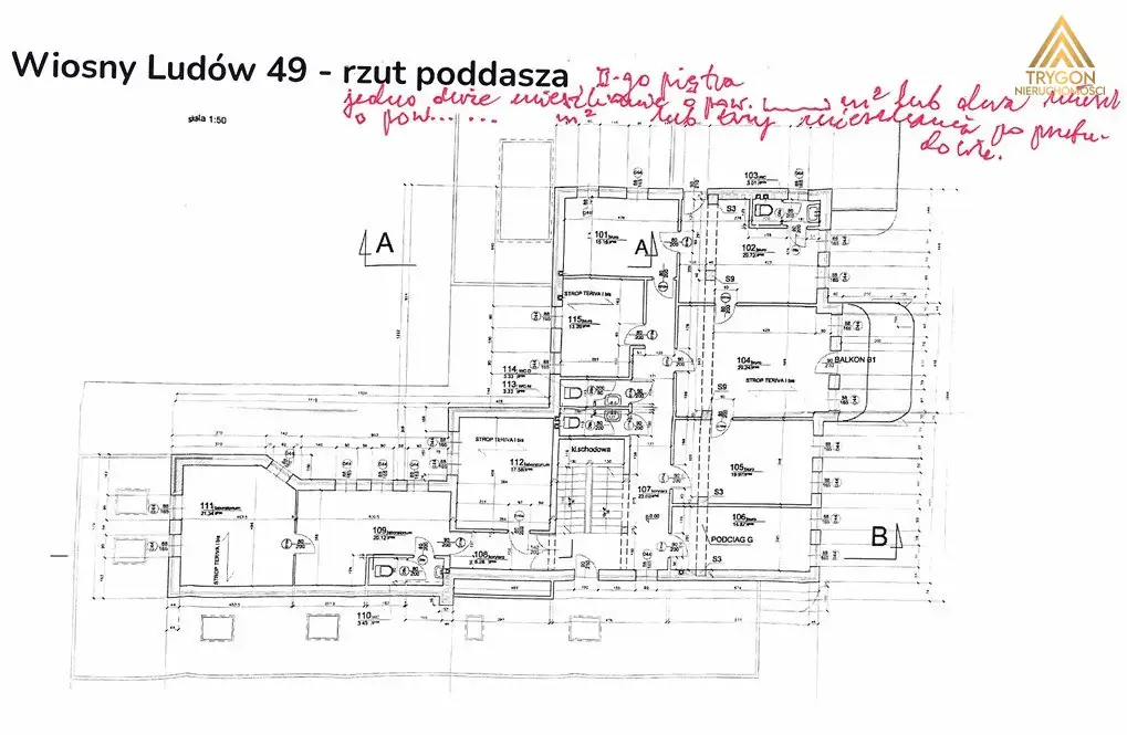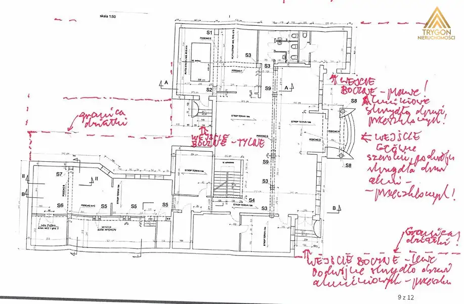 możliwy podział na 4 lokale: 44 m², 48 m², 56 m², 72 m², 76 m² (296 m² pow. użytkowej)