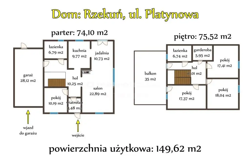 Na sprzedaż przestronny i funkcjonalny dom jednorodzinny położony przy ulicy Platynowej w Rzekuniu. Nieruchomość o powierzchni użytkowej 149,62 m² została wybudowana w 2012 roku na działce o powierzchni 947 m². To idealna propozycja dla osób, które szukają komfortowego, gotowego do zamieszkania domu w spokojnej i bezpiecznej okolicy, z jednoczesnym szybkim dojazdem do Ostrołęki.