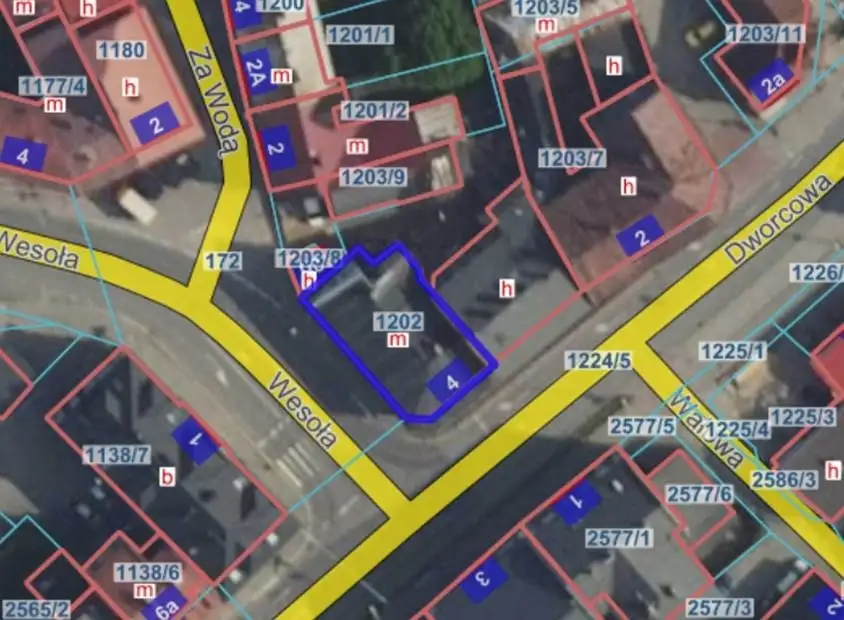 na sprzedaż zabudowanej nieruchomości położonej w Żywcu przy ul. Dworcowej 4, oznaczonej jako działka nr 1202.