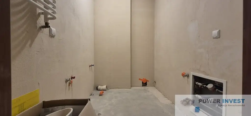 Odświeżone ściany, łazienka w stanie deweloperskim gotowa do urządzenia.