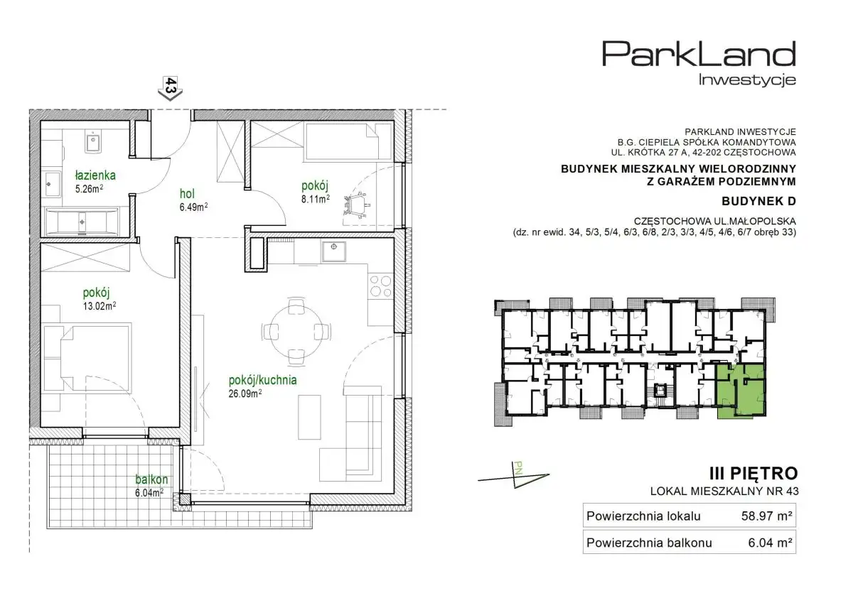 Biuro MEROSS Nieruchomości przedstawia do sprzedaży mieszkanie z najnowszej inwestycji PARK MAŁOPOLSKA, zlokalizowanej w dzielnicy Parkitka w Częstochowie. Lokal mieszkalny...