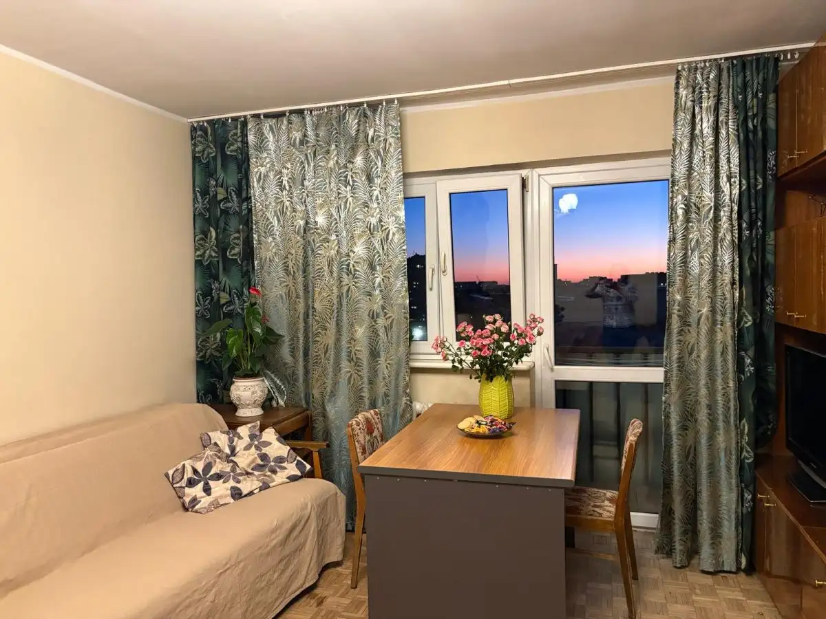 Lokal widny, rozkładowy - do wszystkich pomieszczeń bezpośredni dostęp z obszernego 8-metrowego  przedpokoju z miejscem na dwie szafy wnękowe. Pokoje  19, 10 i 9 mkw., kuchnia  6mkw.   z oknem - możliwość  łatwego połączenia w formie aneksu z  przylegającym salonem.  Z pokoju dziennego wyjście na  niewielki balkon po stronie zachodniej, z widokiem na biznesowe centrum. Na podłogach w pokojach mozaika parkietowa, w kuchni i łazience terakota.  Mieszkanie wymaga remontu lub odświeżenia.  W budynku dwie windy.  Do mieszkania przynależy piwnica.